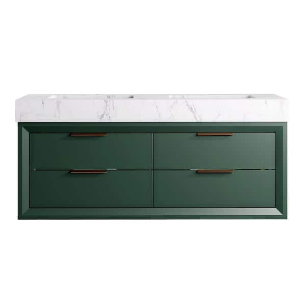 Solidoak 48 in. W x 20.9 in. D x 21.3 in. H Double Sink Bath Vanity in Green with White Cultured Marble Top