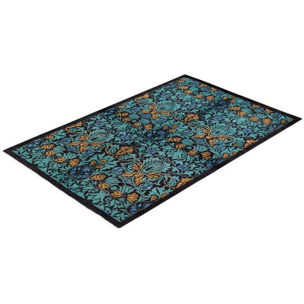 Arts and Crafts One-of-a-Kind Contemporary Black 4 ft. 10 in. x 7 ft. 8 in. Floral Area Rug
