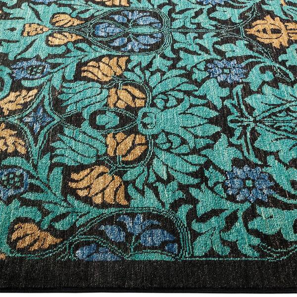 Arts and Crafts One-of-a-Kind Contemporary Black 4 ft. 10 in. x 8 ft. Floral Area Rug