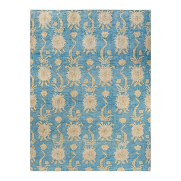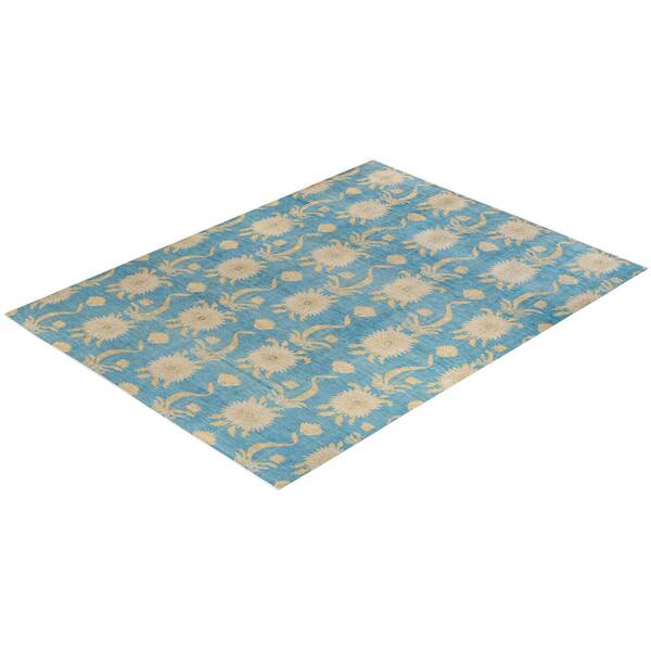 Eclectic One-of-a-Kind Contemporary Light Blue 10 ft. 3 in. x 13 ft. 10 in. Floral Area Rug