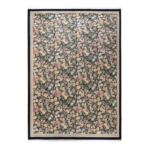 Mogul One-of-a-Kind Traditional Black 10 ft. 0 in. x 14 ft. 0 in. Floral Area Rug