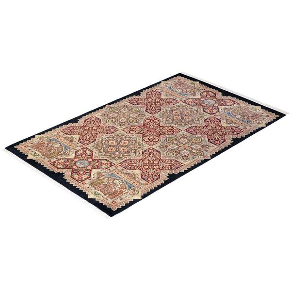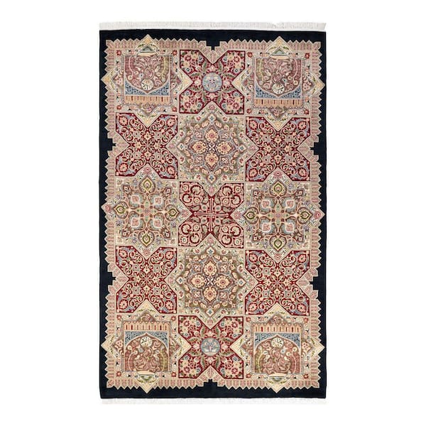 Mogul One-of-a-Kind Traditional Black 4 ft. 7 in. x 7 ft. 5 in. Geometric Area Rug