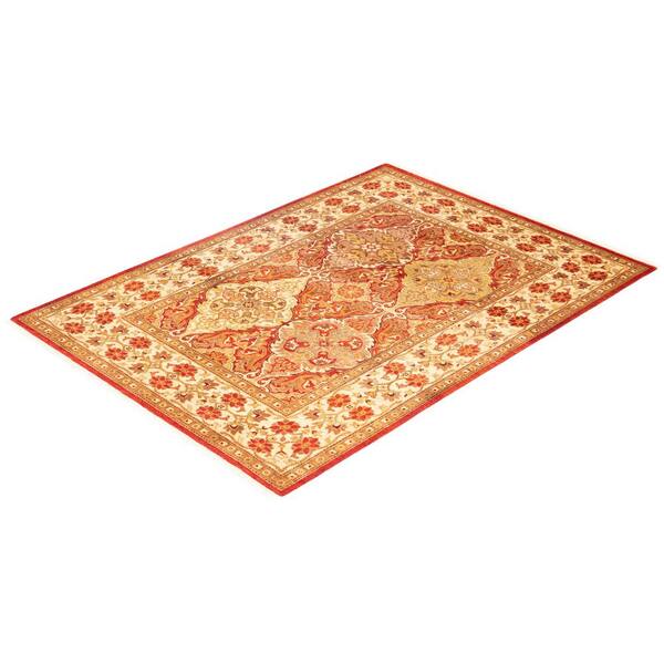 Mogul One-of-a-Kind Traditional Orange 4 ft. 2 in. x 5 ft. 9 in. Oriental Area Rug