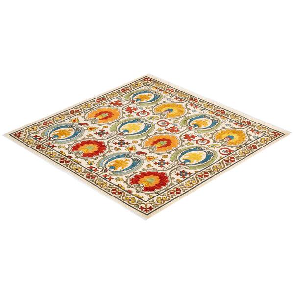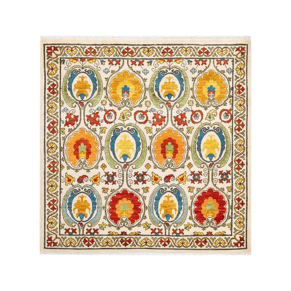 Suzani One-of-a-Kind Contemporary Ivory 4 ft. 10 in. x 5 ft. 0 in. Floral Area Rug