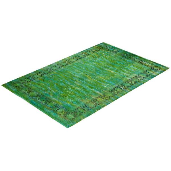 Transitional One-of-a-Kind Contemporary Green 6 ft. 1 in. x 9 ft. 0 in. Overdyed Area Rug