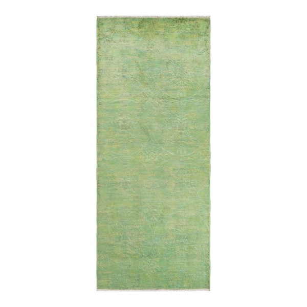 Vibrance One-of-a-Kind Contemporary Green 4 ft. 2 in. x 10 ft. 2 in. Overdyed Area Rug