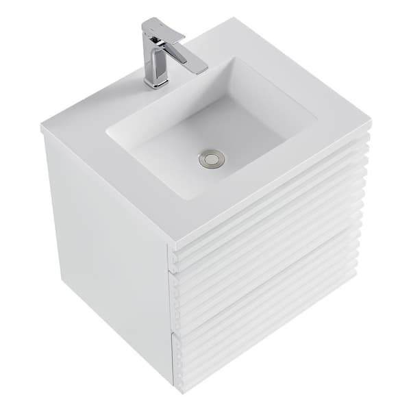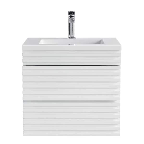 Sonata 24 in. W Single Sink Wall Mounted White Bath Vanity with White Acrylic Top Unassembled