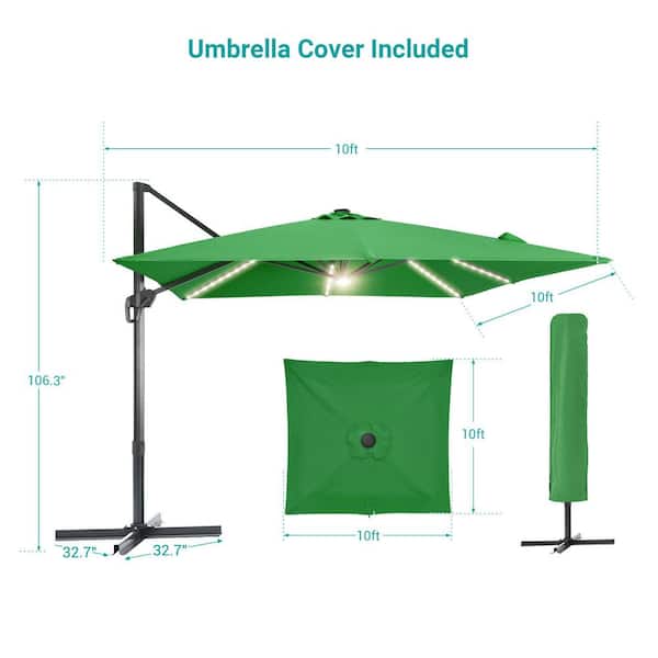 10 ft. LED Outdoor Cantilever Patio Umbrella 360° Rotation and Infinite Canopy Angle Adjustment Kelly Green