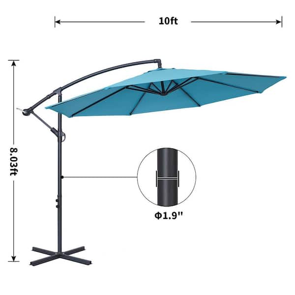 10 ft. Round Outdoor Patio Cantilever Offset Umbrellas in Lake Blue