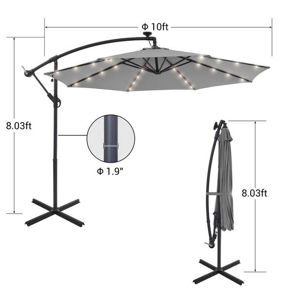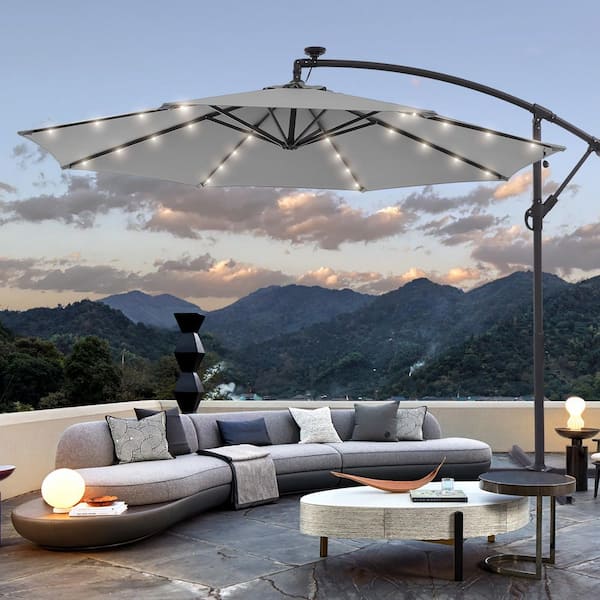 10 ft. Round Outdoor Patio Solar LED Lighted Cantilever Umbrella in Gray