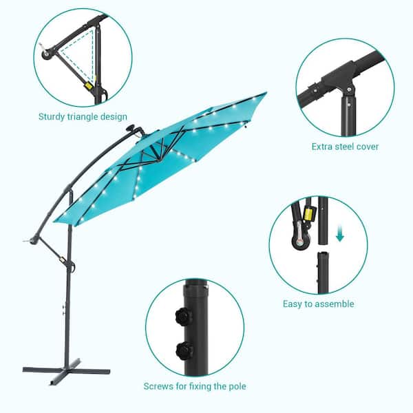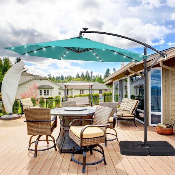 10 ft. Round Outdoor Patio Solar LED Lighted Cantilever Umbrella in Lake Blue