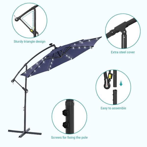 10 ft. Round Outdoor Patio Solar LED Lighted Cantilever Umbrella in Navy Blue