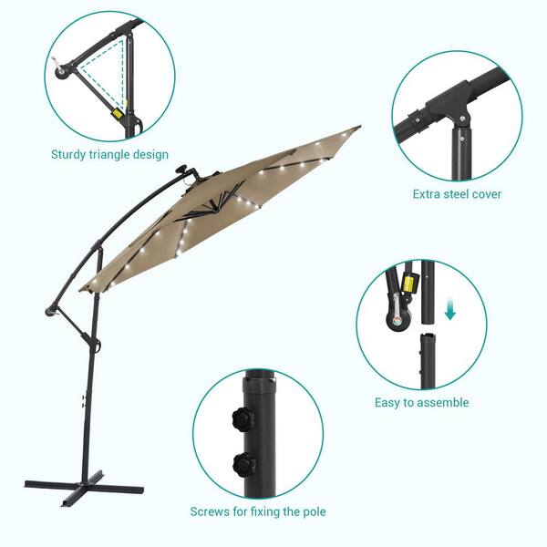10 ft. Round Outdoor Patio Solar LED Lighted Cantilever Umbrellas in Taupe