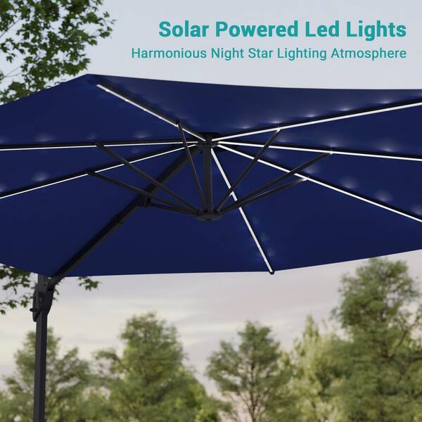10 ft. Solar-powered Cantilever Patio Umbrella with 360° Rotation and Canopy Angle Adjustment in Navy Blue