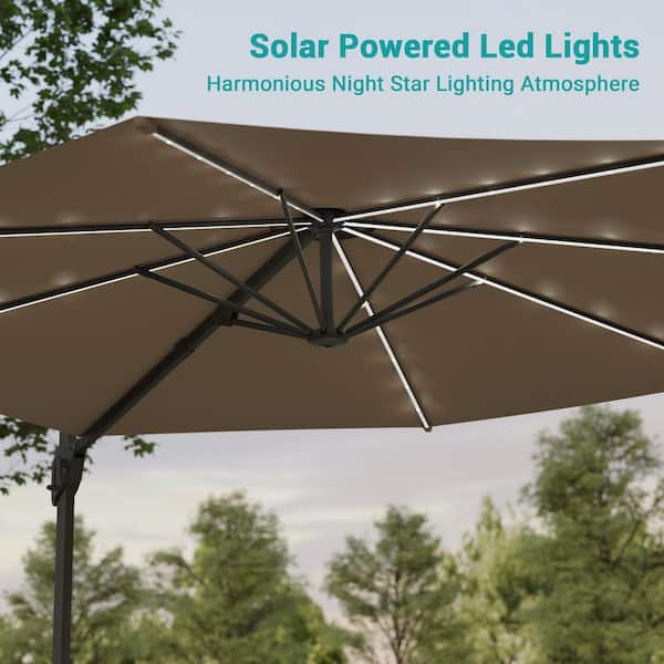 10 ft. Solar-powered Cantilever Patio Umbrella with 360° Rotation and Canopy Angle Adjustment in Taupe
