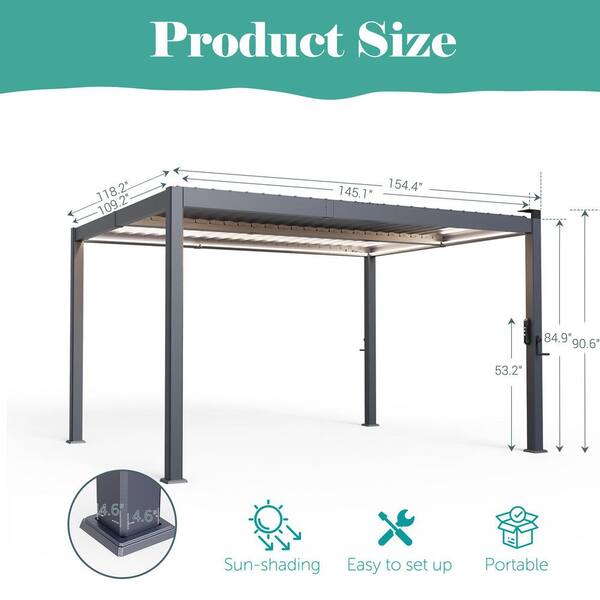 10 ft. x 13 ft. All-Aluminum Louvered Pergola with Adjustable Roof, Detachable LED Control Panel, Gray