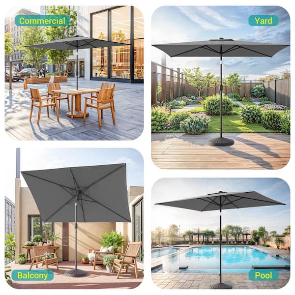 10 ft. x 6.5 ft. Rectangle Outdoor Patio Market Table Umbrella with Push Button Tilt and Crank in Gray
