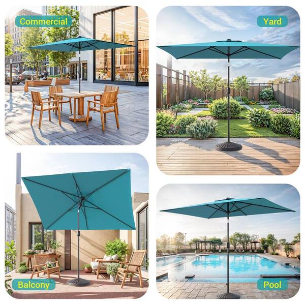 10 ft. x 6.5 ft. Rectangle Outdoor Patio Market Table Umbrella with Push Button Tilt and Crank in Lake Blue