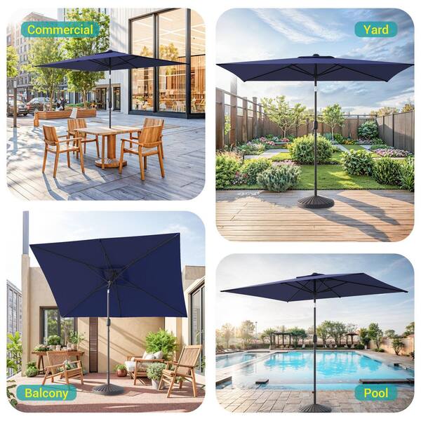 10 ft. x 6.5 ft. Rectangle Outdoor Patio Market Table Umbrella with Push Button Tilt and Crank in Navy Blue
