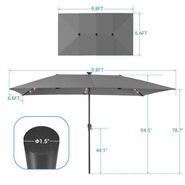 10 ft. x 6.5 ft. Steel Solar-powered Double-Sided Market Patio Umbrella with Canopy Outdoor Table Umbrella in Gray
