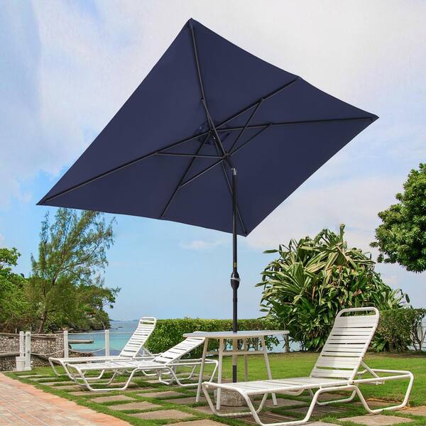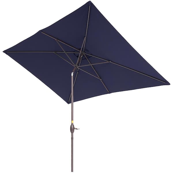 10 ft. x 7 ft. Aluminum Frame Circle Outdoor Market Patio Umbrella in Navy Blue, with a Crank and Tilt Button