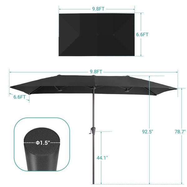 10 x 6.5 ft. Steel Double-Sided Market Patio Umbrella with Large Canopy Outdoor Table Umbrella in Black