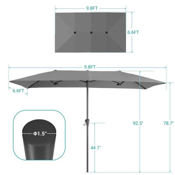 10 x 6.5 ft. Steel Double-Sided Market Patio Umbrella with Large Canopy Outdoor Table Umbrella in Gray