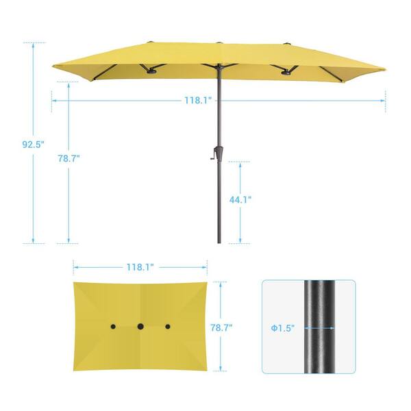 10 x 6.5 ft. Steel Double-Sided Market Patio Umbrella with Large Canopy Outdoor Table Umbrella in Yellow