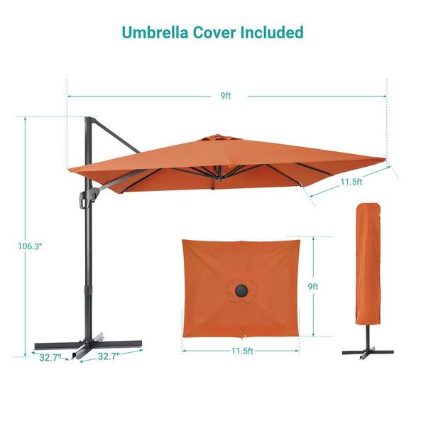 11.5 x 9 ft. Aluminium Frame Cantilever Patio Umbrella 360° Rotation and Infinite Canopy Angle Adjustment in Rust Red