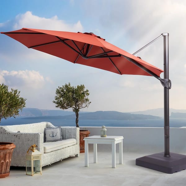 11 ft. Round Aluminum Pole Outdoor Cantilever Umbrella Patio Offset Umbrella in Rust Red
