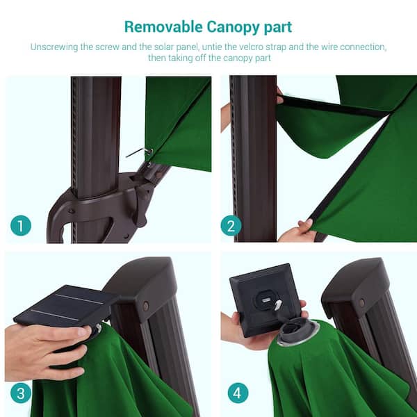 11 ft. Solar LED Round Aluminum Cantilever Outdoor Patio Umbrellas with Base Stand in Kelly Green
