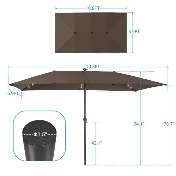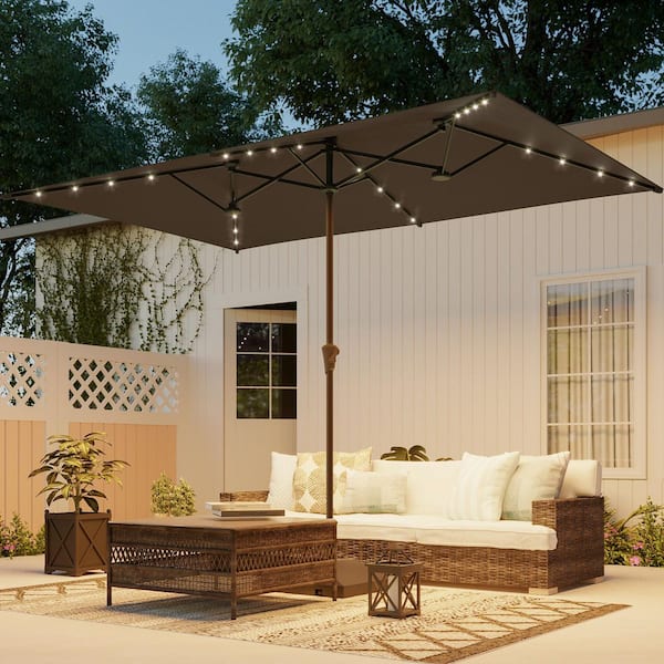 11 x 7 ft. Steel Solar-powered Double-Sided Market Patio Umbrella with Canopy Outdoor Table Umbrella in Taupe