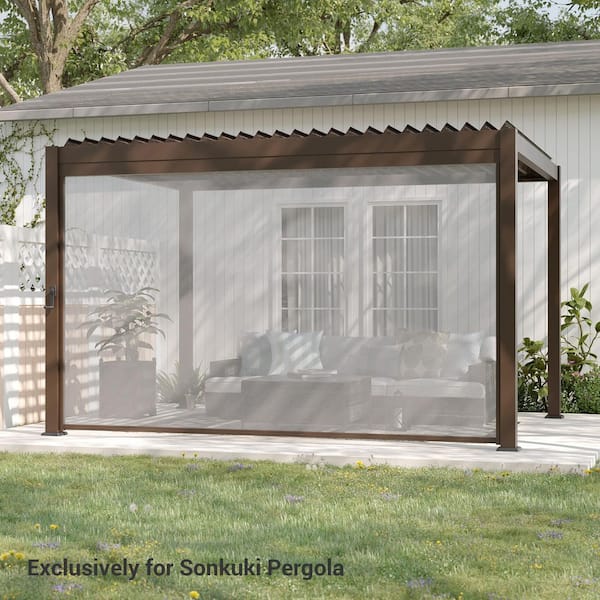 13 ft. Adjustable Height Multifunctional Pull-Down Privacy Screen for Pergola Accessories, Brown