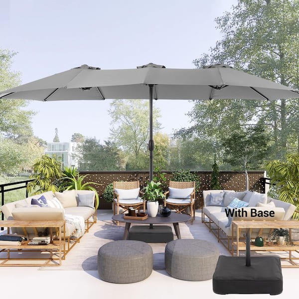 15 ft. x 9 ft.Outdoor Double-Sided Umbrella Patio Market Umbrella with Crank and Base in Gray