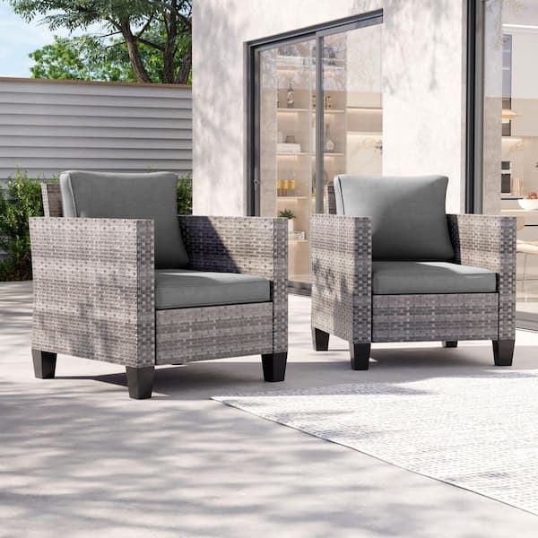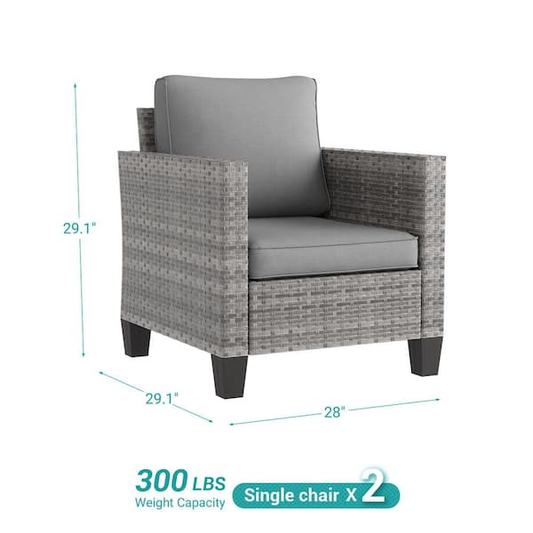 2-Piece Patio Sofa Gray Wicker Outdoor Single Sofa Set, Gray