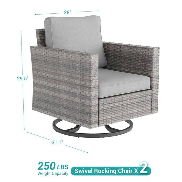 2-Piece Patio Sofa Set Gray Wicker Furniture Set Swivel Rocking Sofa Outdoor Rocking Chair with Linen Grey Cushion