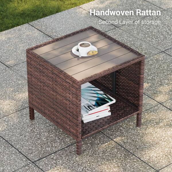 3-Piece Brown Wicker Outdoor Swivel Rocking Chairs Patio Bistro Set with Side Table Gray Cushion