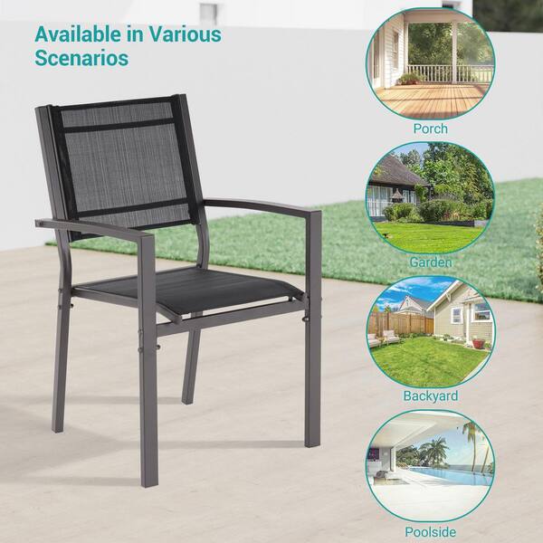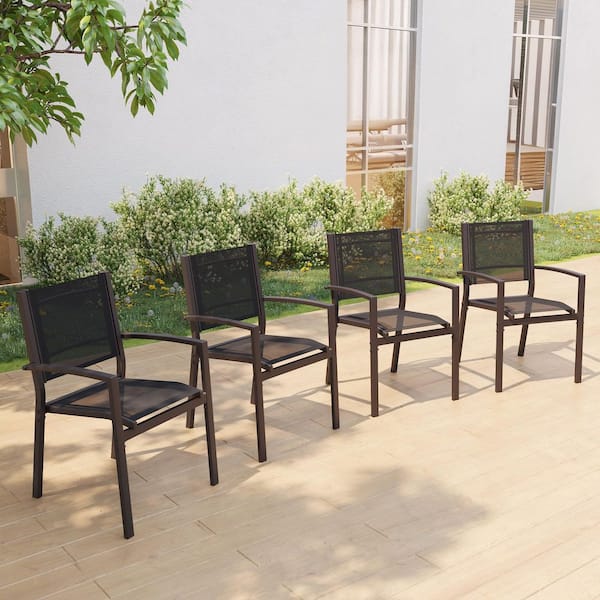 4-Pieces Brown Frame Powder-coated Steel Patio Outdoor Black Textilene Dining Chairs