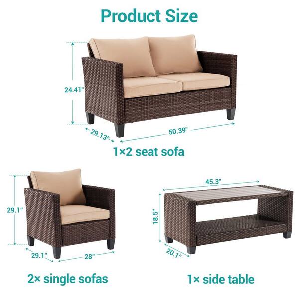 4-Pieces Patio Conversation Set Loveseat Sofa with Coffee Table All-Weather Brown Wicker with Sand Cushions