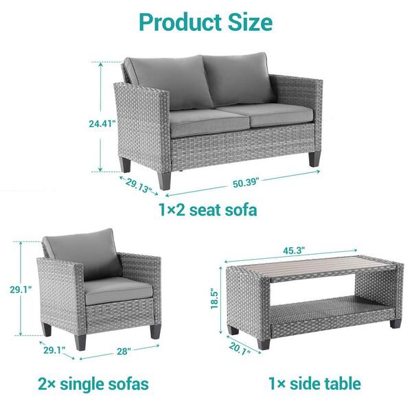 4-Pieces Patio Conversation Set Loveseat Sofa with Coffee Table All-Weather Gray Wicker with Gray Cushions