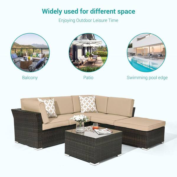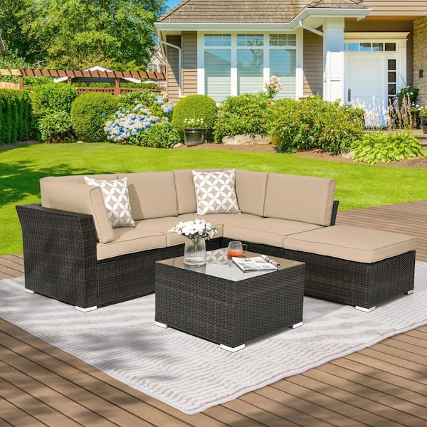 4-Pieces Rattan Wicker Outdoor Sofa Set Patio Conversation Furniture with Beige Cushions and Coffee Table