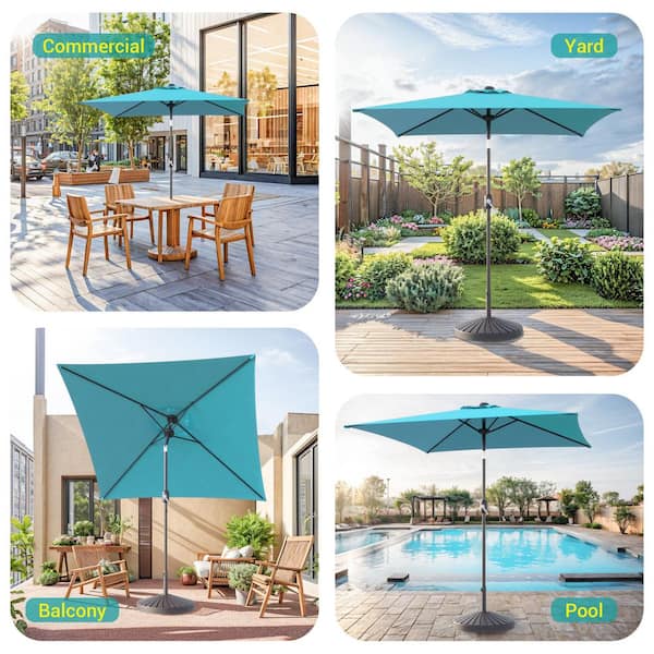 6.5 ft. x 6.5 ft.LED Square Patio Market Umbrella - Stylish, Sun-Protective, Enhance Your Outdoor Oasis, Lake Blue