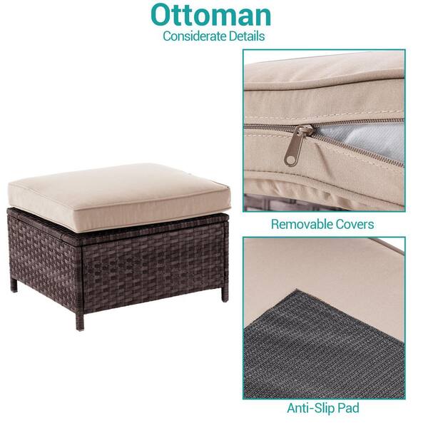 6-Pieces Patio Conversation Set with Rectangle Fire Pit Table and Swivel Rocking Chairs, Brown Wicker Sand Cushion