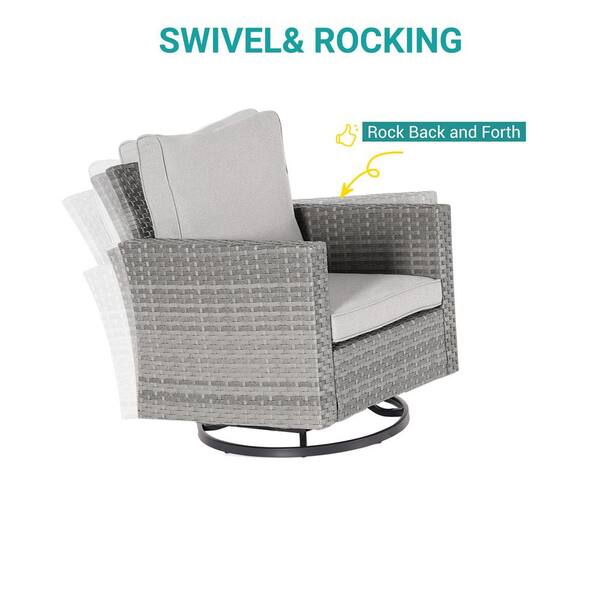 6-Pieces Patio Conversation Set with Rectangle Fire Pit Table and Swivel Rocking Chairs, Gray Wicker Linen Gray Cushion