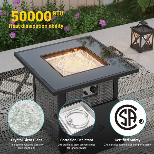 6-Pieces Patio Conversation Set with Square Fire Pit Table and Swivel Rocking Chairs, Gray Wicker Beige Cushion