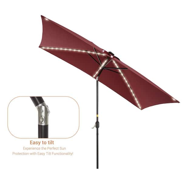 6 ft. x 9 ft. Aluminum Pole Outdoor Market Umbrella Solar LED Lighted Rectangular Patio Umbrella, Chili Red