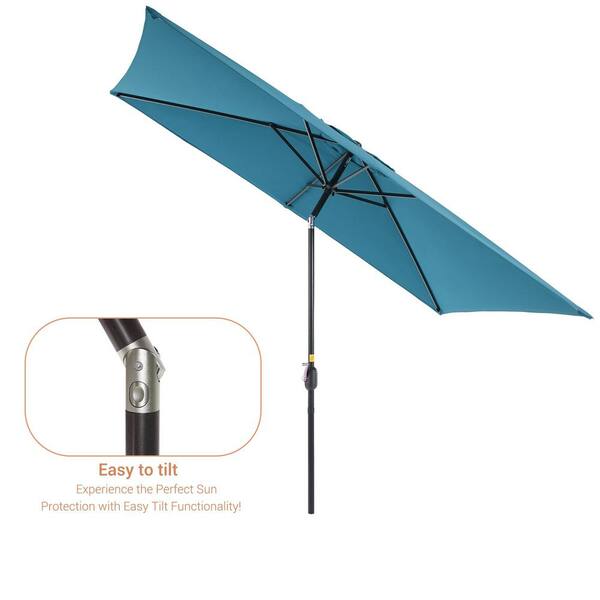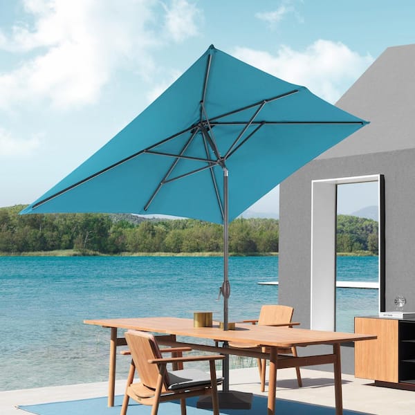 6 ft. x 9 ft. Rectangular Patio Market Umbrella - Stylish, Durable, and Sun-Protective, Lake Blue