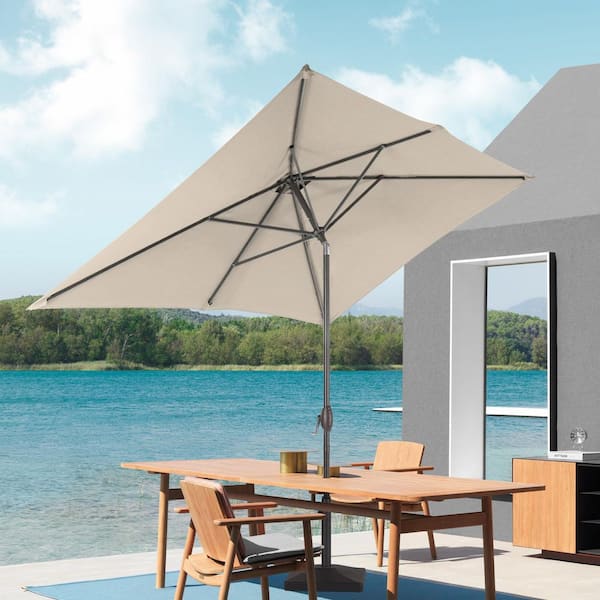 6 ft. x 9 ft. Rectangular Patio Market Umbrella - Stylish, Durable, and Sun-Protective, Sand
