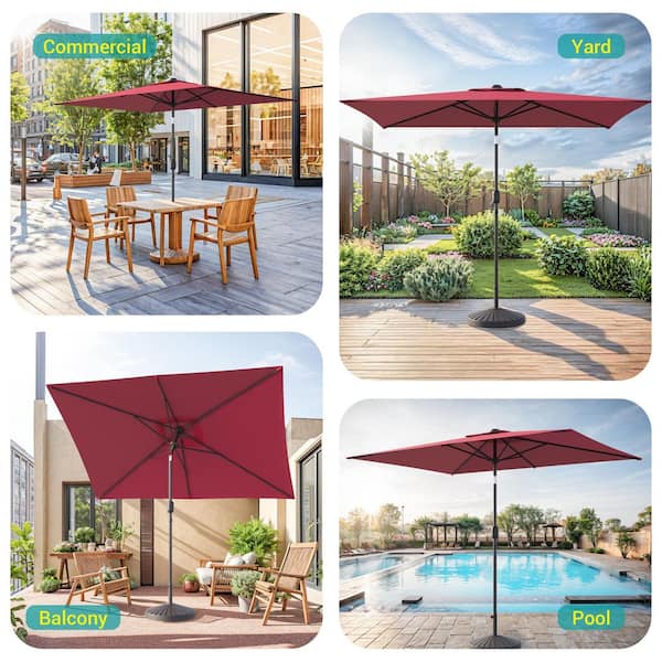 6 ft. x 9 ft. Rectangular Steel Patio Market Umbrella with Push Button Tilt in Red