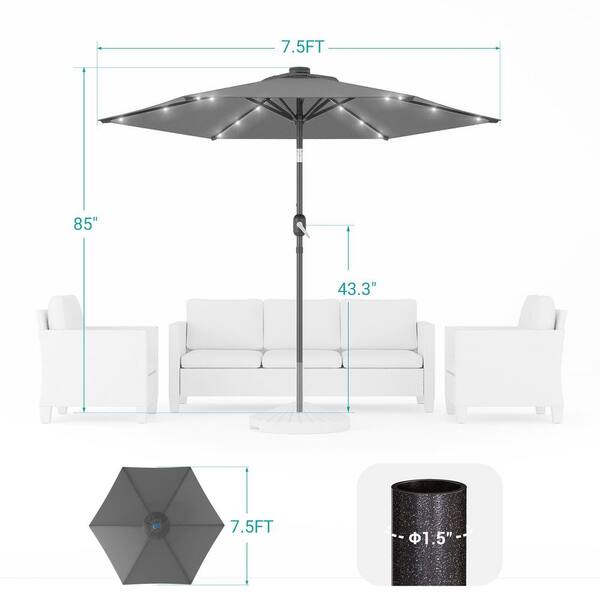 7.5 ft. Market Solar Lighted LED Crank and Tilt Patio Umbrella, Table Umbrellas, UV-Resistant Canopy in Anthracite Gray